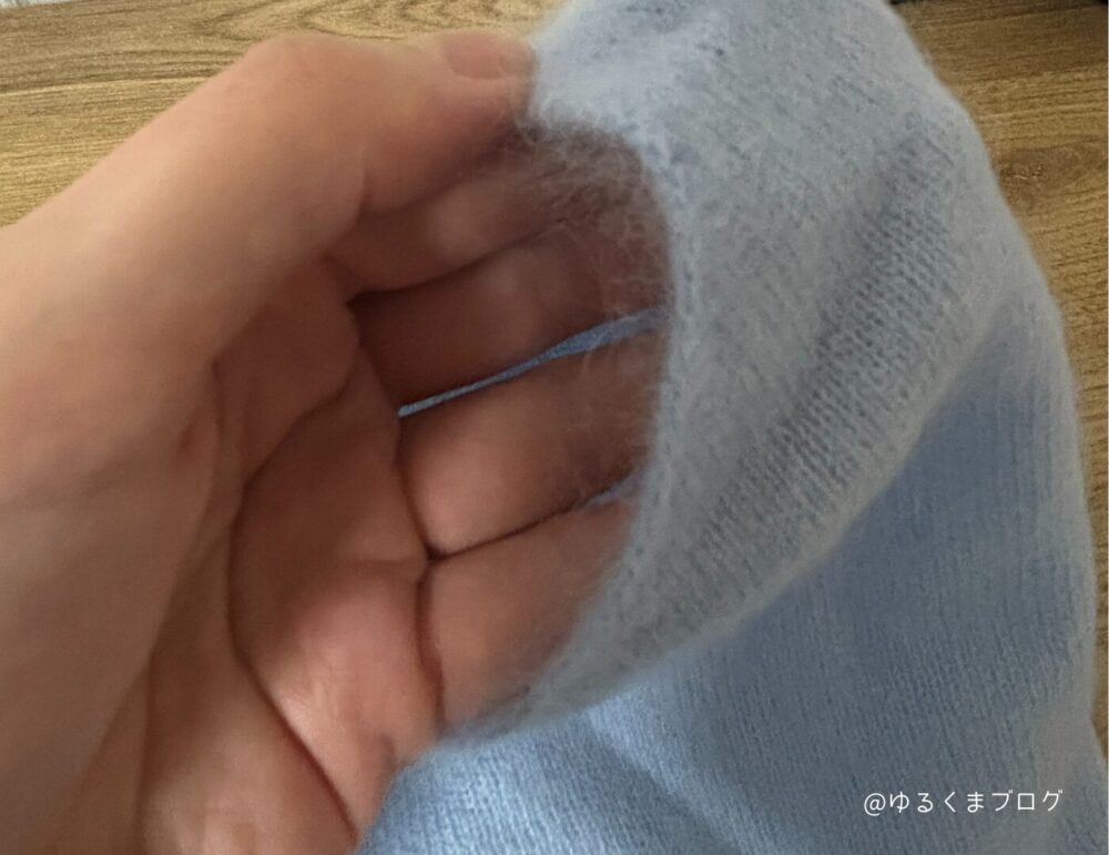 ただし、実際に着てみた印象としては、すぐに大きな毛玉ができるというわけではなく、仮にできてしまっても、繊維が柔らかいので、軽くブラシをかけるだけのお手入れでかなり長持ちしそうです♡