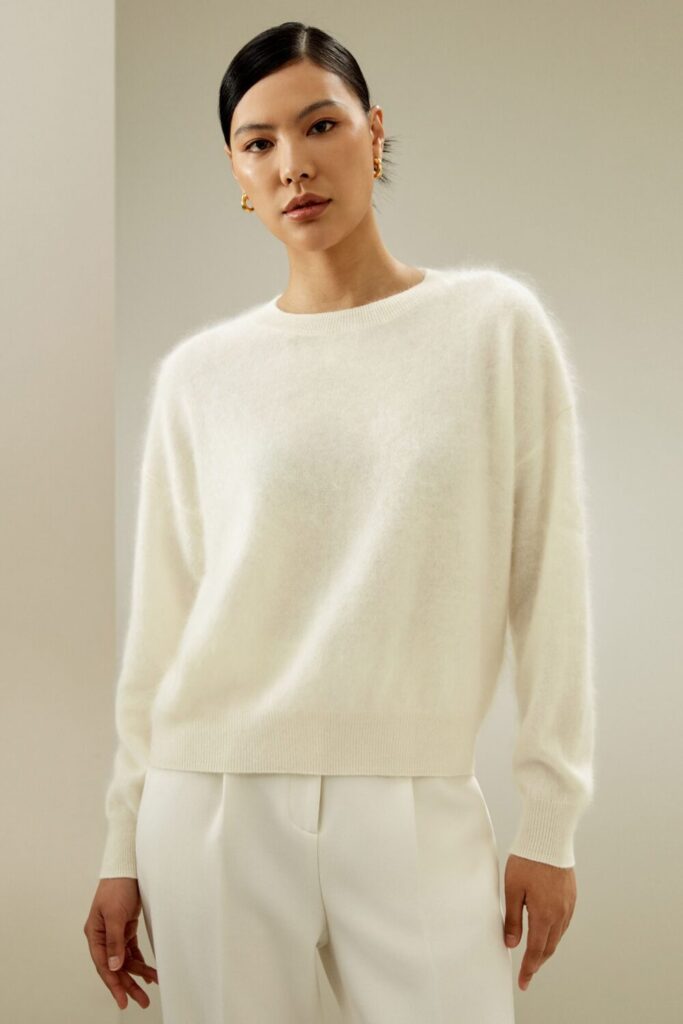 ブルーのニットの方は気にならなかったんですが、白いニット「【michill掲載】クラシック ラウンドネック カシミア セーター
