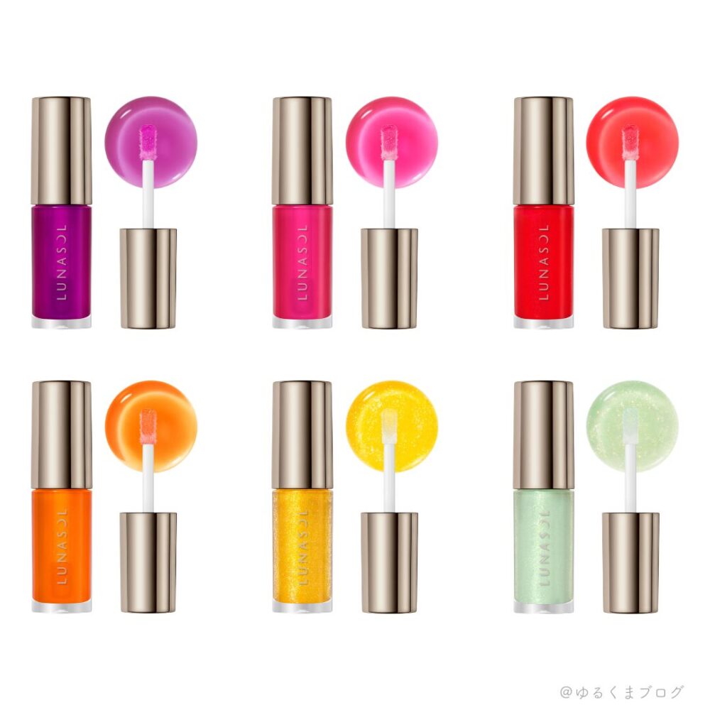| 色展開 | 全6色うち限定1色 ・01 Plum Glaze ・02 Berry Pop ・03 Cherry Drop ・04 Tangerine Honey ・05 Sunny Splash ・EX01 Sea Foam |